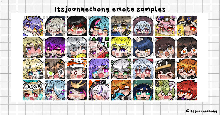 - 250x250px transparent .png file-additional 50% will incur if an emote contains two (2) characters